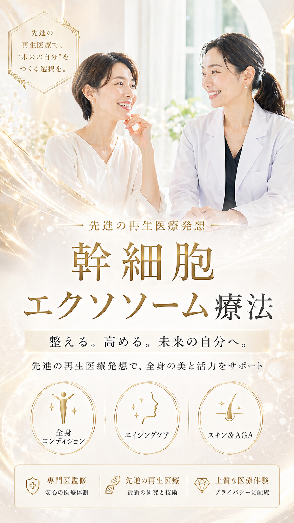 脂肪由来(皮膚、頭髪育毛、肝臓機能などへの効果が高い)、乳歯歯髄由来(神経系、骨、抗炎症などに効果的)、そして臍帯由来(広範に効果がある)の培養上清液が主流となっています。全ての方々に最適な組み合わせを提供することが可能です。