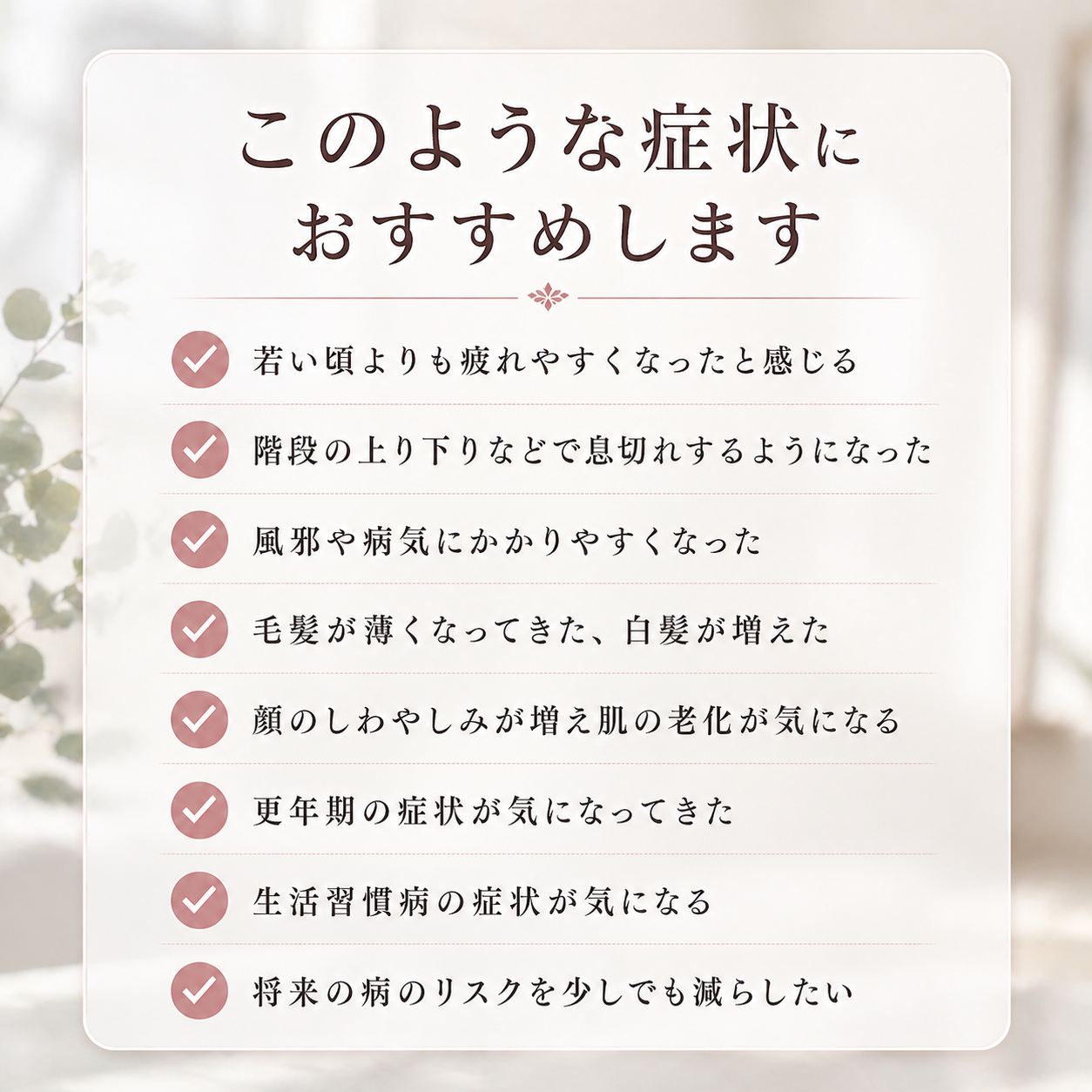 これらによりアンチエイジング効果、疲労回復、育毛促進などの効果が期待できます。