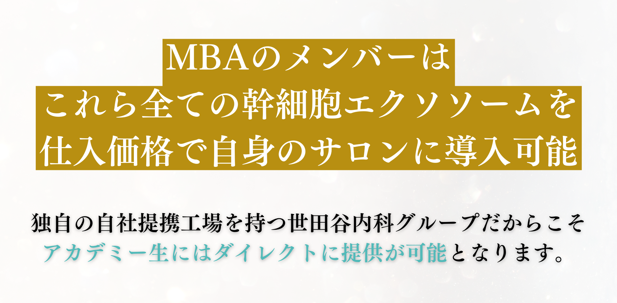 その用途は医療だけにとどまらず、美容液としての利用も視野に入れてラインナップされているため、MBA内で認定されたサロンの場所でも取り扱うことができるようになりました。